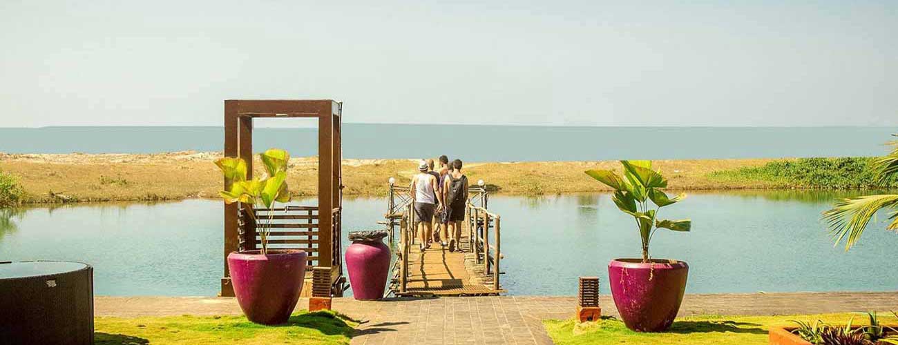Bogmalo Beach Resorts Accommodation options at the Bogmalo beach are popular for tranquil ambience. Although these resorts are less crowded throughout the year, yet they are ideal for partying. Located at a proximity to Dabolim airport (4 km) and Vasco Da Gama city (8 km), these beach resorts provide an opportunity to explore the Bogmalo fishing village. You can head towards the famous Naval Aviation Museum and can try out adventurous sports such as- windsurfing, diving, jet skiing, & trekking at the beach. These sea facing luxurious accommodation options are available at affordable prices.